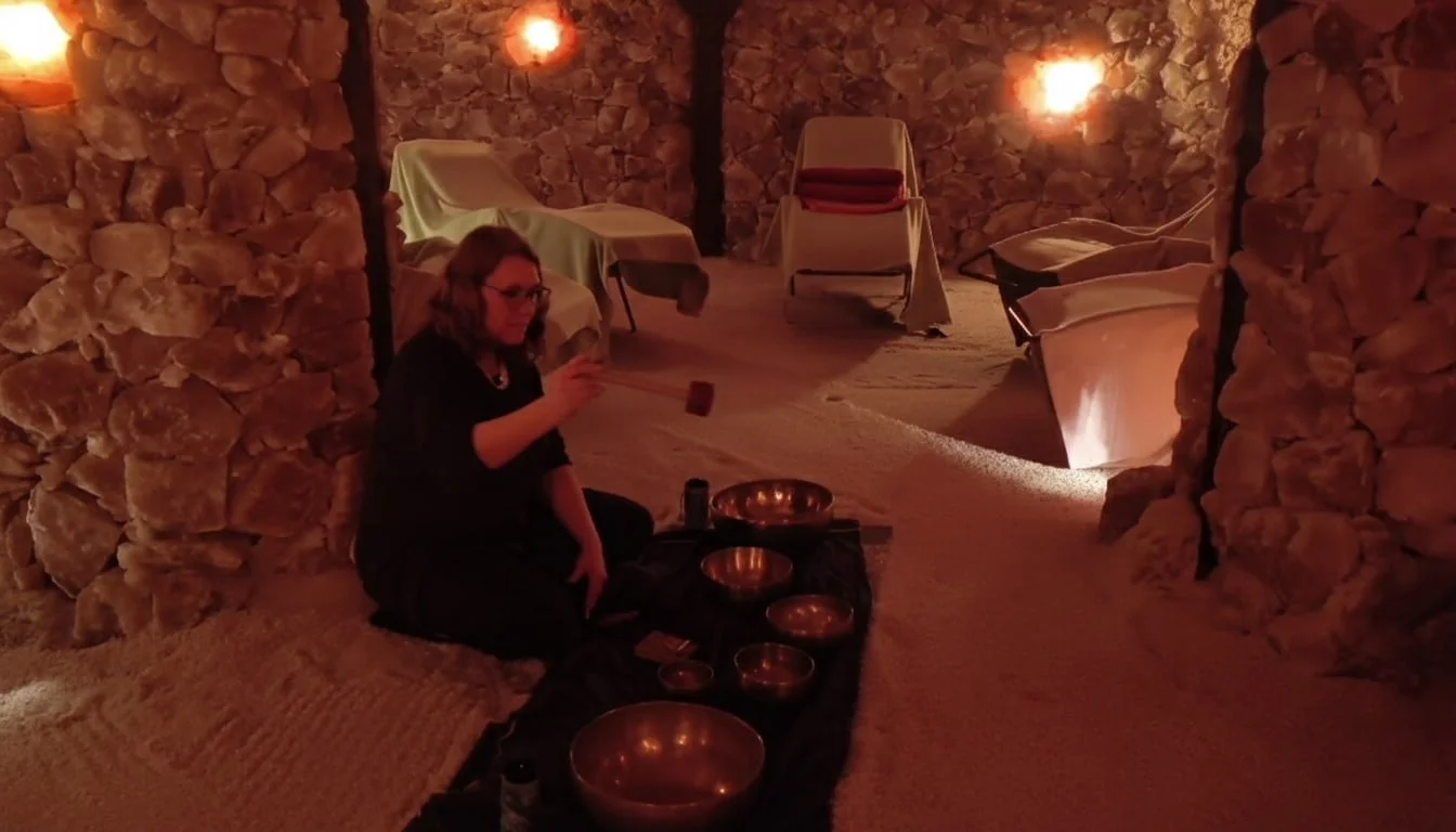 Erlebe Klang in heilsamer Salzluft – eine meditative Reise der besonderen Art. Lass Dich von sanften Schwingungen umhüllen, während die salzhaltige Atmosphäre der Grotte Deine Sinne beruhigt und tiefe Entspannung einkehrt. Eine einzigartige Verbindung von Klang und Salz für Körper und Geist.